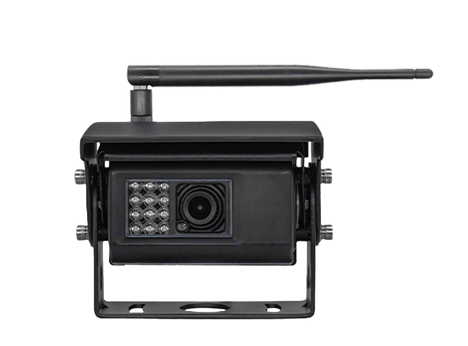 The 23020 camera is a wireless AHD camera featuring a 130° wide-angle lens, 12 infrared LEDs, and an electric visor that automatically protects the lens from dirt and water spray.