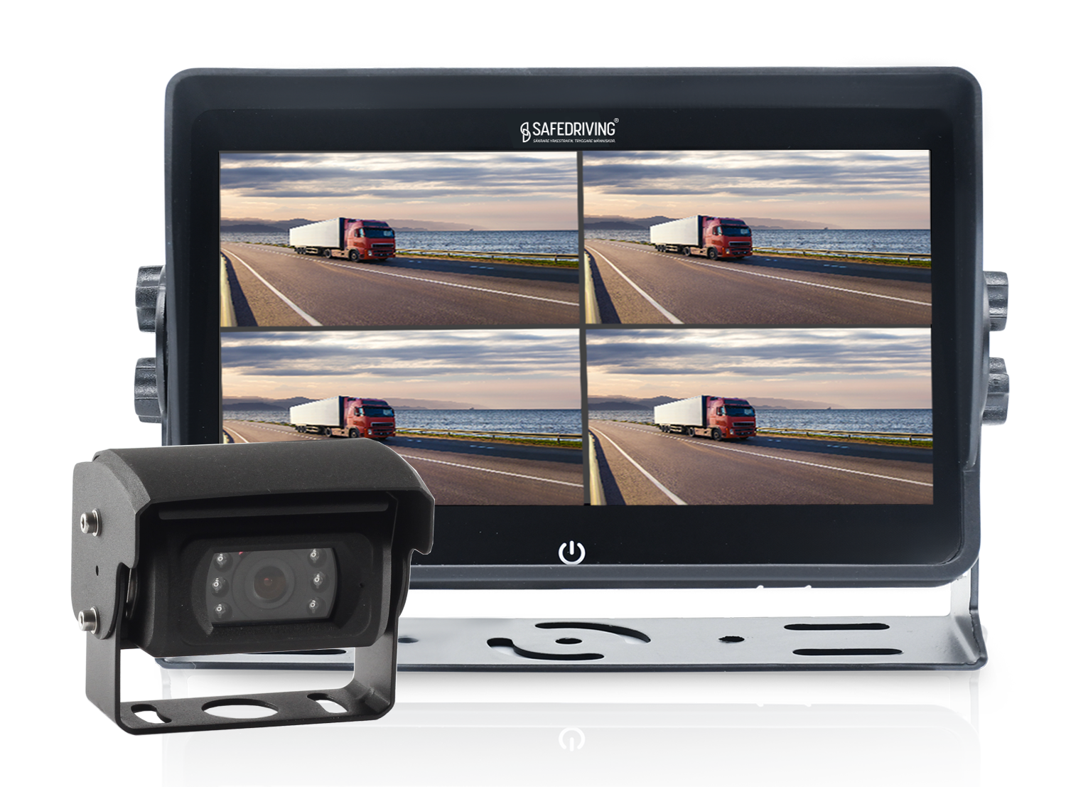 Ett robust och pålitligt kamerasystem för tunga fordon. Den stora 10-tums IPS-pekskärmen ger tydlig bild i alla ljusförhållanden och stöd för upp till fyra kameror samtidigt. Bilden kan visas i helskärm eller delad vy, och monitorn minns inställningarna även efter strömavbrott. Den vattentäta IP69K-kameran med 130° synfält och elektriskt visir skyddar linsen mot smuts och regn för bibehållen sikt. IR-belysning med upp till 15 meters räckvidd säkerställer god sikt även i mörker. Systemet är byggt för att tåla vibrationer, väta och extrema temperaturer.