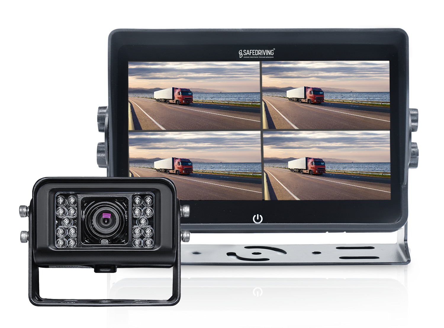 Ett robust och pålitligt kamerasystem för tunga fordon. Den stora 10.1-tums IPS-pekskärmen ger tydlig bild i alla ljusförhållanden och stöd för upp till fyra kameror samtidigt. Bilden kan visas i helskärm eller delad vy, och monitorn minns inställningarna även efter strömavbrott. Den vattentäta IP69K-kameran med 130° synfält ger bred sikt bakåt, och IR-belysning med upp till 15 meters räckvidd säkerställer god sikt även i mörker. Systemet är byggt för att tåla vibrationer, väta och extrema temperaturer.